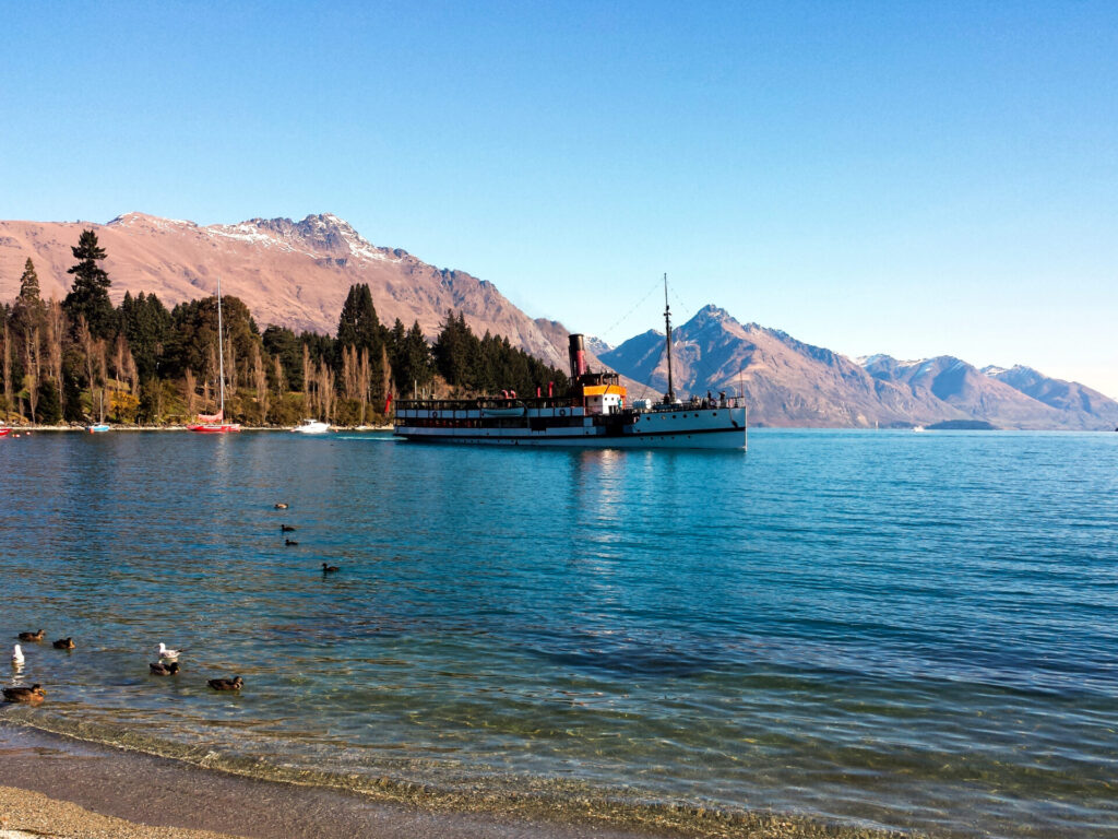 - Ride the TSS Earnslaw Steamer. The TSS Earnslaw is a coal-fired steamship that goes around the lake – you’ll definitely notice it when you see it! There are several different tour options: you can just take a short cruise around the lake, or you can take it to a private farm at Walter’s peak where they’ll feed you and show you around.