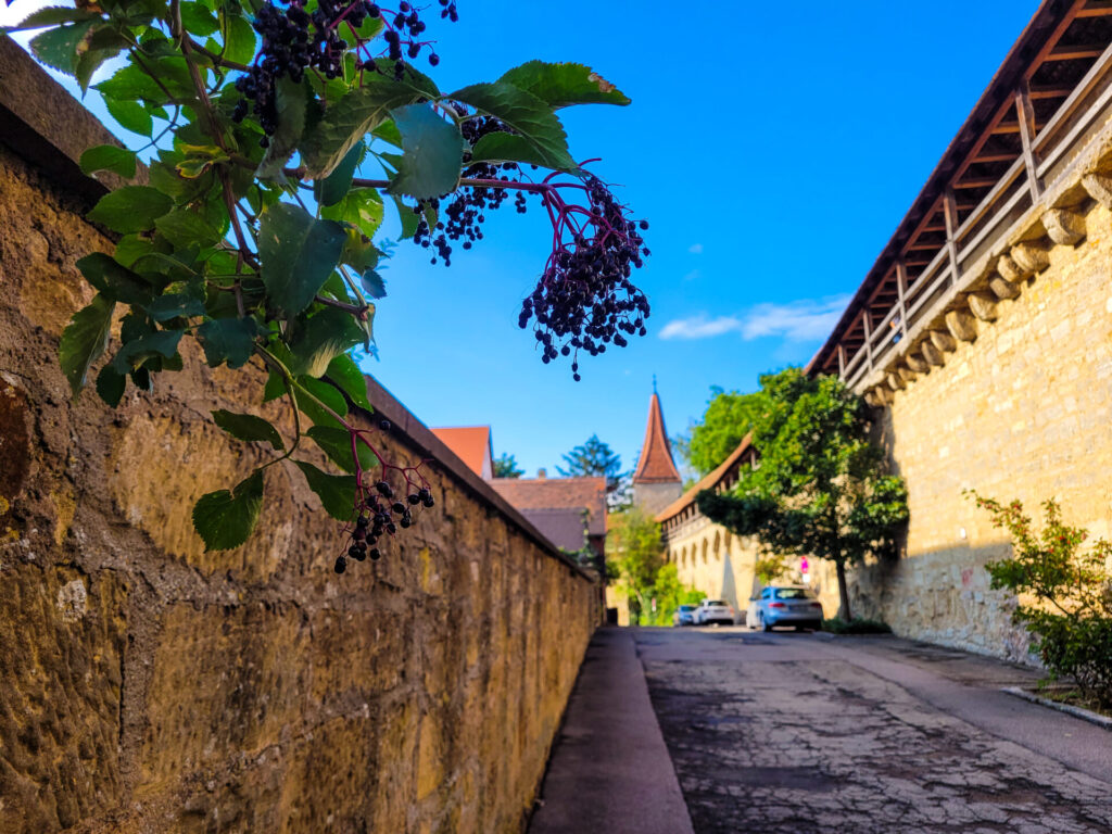 The old town of Rothenburg ob der Tauber is surrounded by 4 km of city walls, and you can walk a full circuit of the town’s perimeter on these walls!